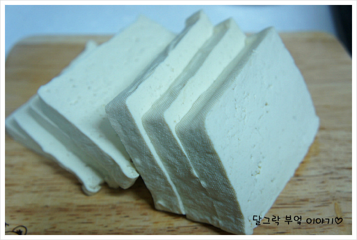 육수를 만드는 사이 두부는 큼직하고 두툼하게 썰고,