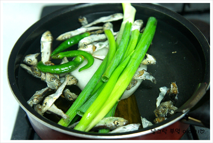 멸치, 다시마 외에 대파, 청양고추, 무 등, 집에 있는 각종 재료들을 적극 활용하면