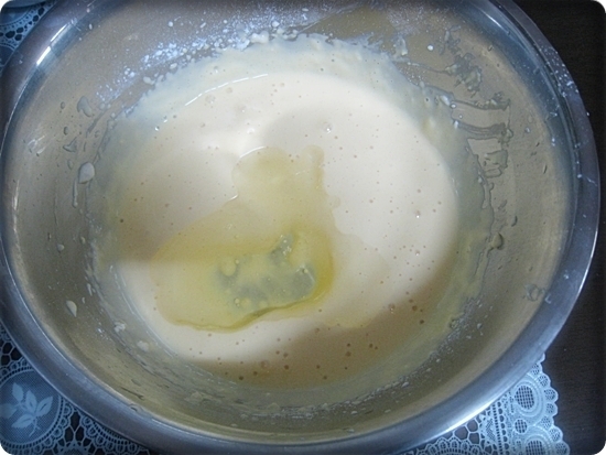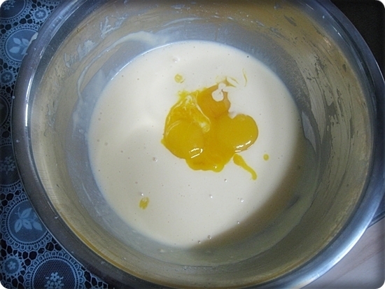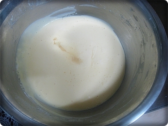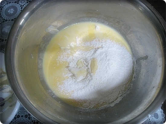 우유를 볼에 넣고 약간 식힌 후 체친 박력분을 넣고 잘 섞어준다.