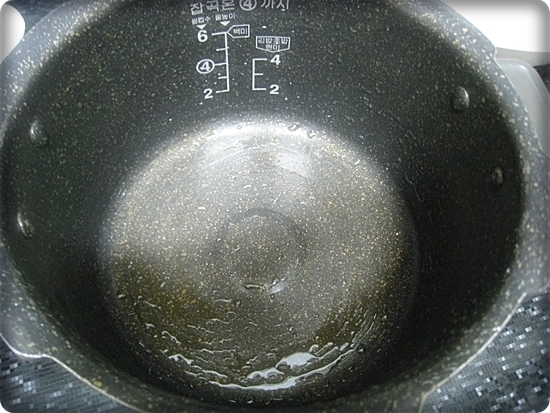전기 밥솥에 미리 기름이나 철판 이형제를 발라둔다.