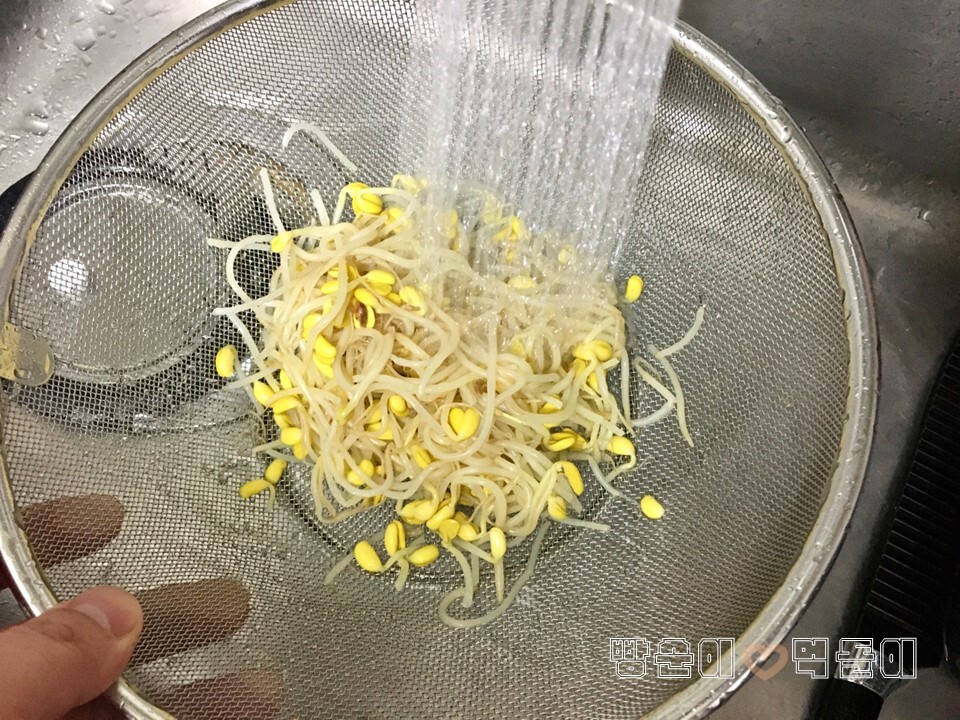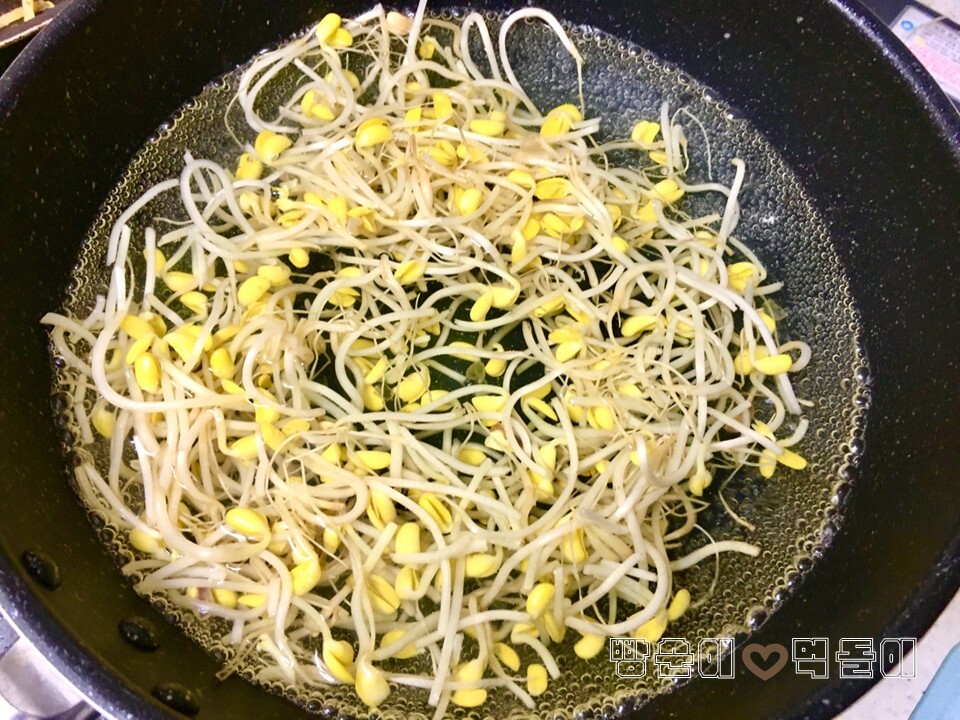콩나물은 끓는 물에 약 40초 정도 숨이 한 번 죽을 정도로만 데쳐주고,
