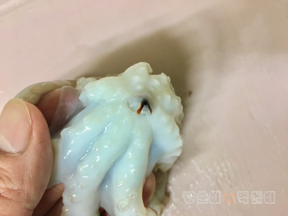 ▲ 낙지 머리 부분에 들어있는 내장들을 제거해 줍니다.