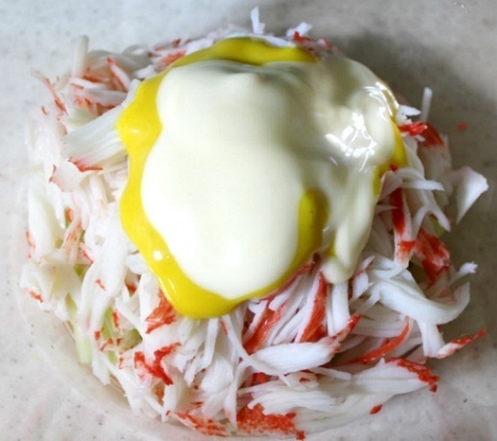 5) 그다음 크래미에 소스를 버무려놓습니다.