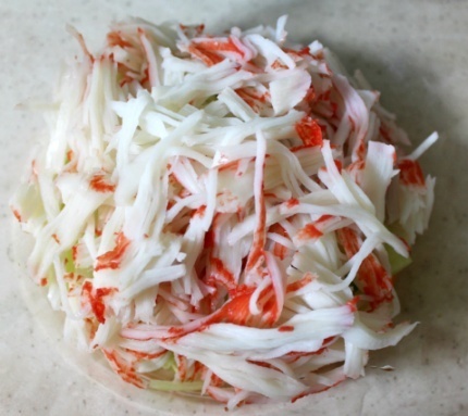 2) 크래미는 사선으로 모두 찢어줍니다.