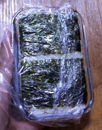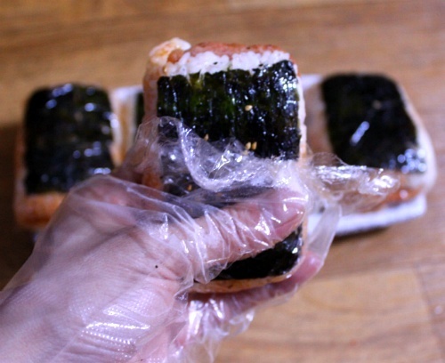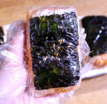 10) 깔아두었던 랩으로 밥 버거를 감싸주세요.