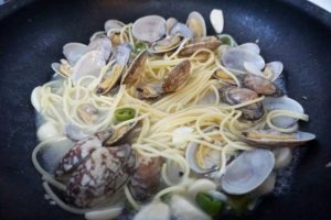 4. 바지락은 물에 담가 바락바락 문질러 씻은 후 흐르는 물에 헹구고 체에 밭쳐 물기를 뺀다.