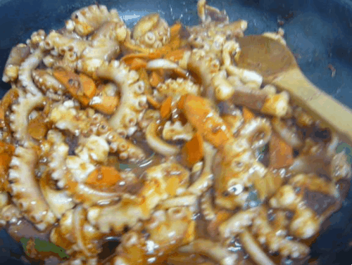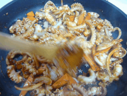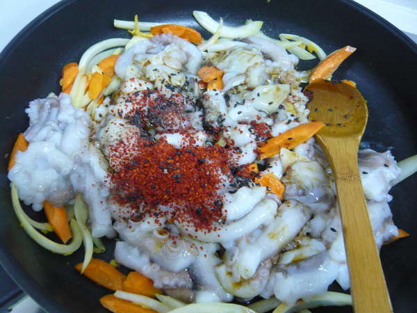 오래 볶으면 낙지가 질겨지고 수분이 많이 생긴답니다.