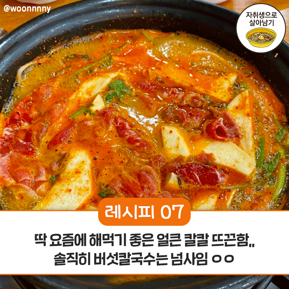 [스크랩] 추운 날 생각나는 얼큰한 버섯칼국수 레시피 작성자뺀순|작성시간24.12.22|조회수36 목록 댓글 0 글자크기 작게가 글자크기 크게가 추운 날 생각나는 얼큰칼칼 버섯칼국수 레시피 다음검색 스크랩 원문 : 민들레가 있는도시 현재 게시글 추가 기능 열기 북마크 공유하기 신고 센터로 신고 댓글 댓글 0 댓글쓰기 답글쓰기 댓글 리스트