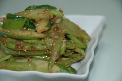 10. 새로운 맛, 오이 된장 무침. 재료; 오이, 된장, 파, 마늘, 생수, 참기름, 깨소금