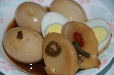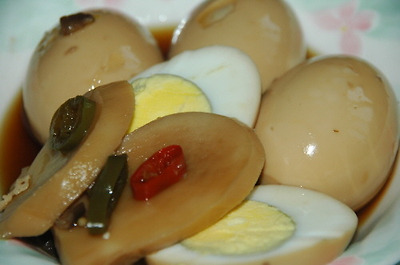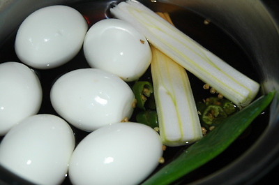 달걀을 삶아 껍질을 벗기고, 간장과 생수의 비율은 입맞에 맞게 조절해서 조림장을 만들어 달걀을 넣고 달걀 색이 갈색이 될 때까지 조리다가 새송이를 마저 넣고 5분쯤 더 조려 마무리.