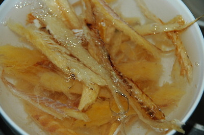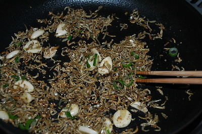 맥주 안주로 사 온 노가리. 양이 꽤 많아서 반찬으로도 만들었어요. 물에 한 번 헹구면 더 위생적이겠지만, 제 입에는 말랑해지면서 맛도 빠지는 듯 해서 이물질을 잘 골라내고 기름 두른 뜨거운 팬에서 한 참 볶는 걸로 대신했어요.