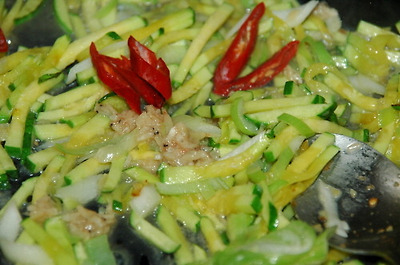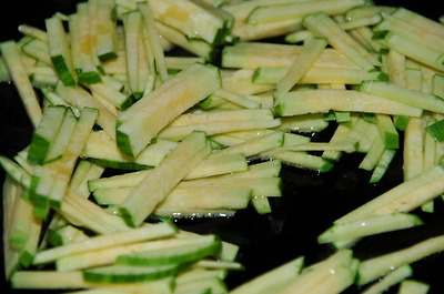 3. 한 여름에 빠질수 없는 호박 볶음과 전. 재료; 애호박, 볶음(새우젓, 홍고추, 마늘, 파, 올리브유, 생수 약간, 깨소금), 전(밀가루, 달걀, 맛술)
