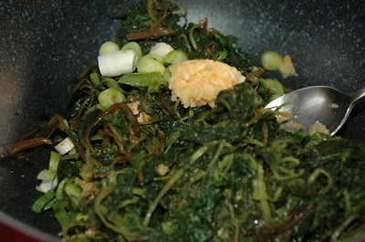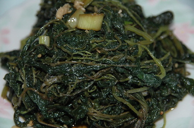 연한 줄거리와 잎만 골라 다듬어 소금 넣은 끓는 물에 얼른 데쳐 찬 물에 헹구어 물기를 짜서, 팬에 들기름 두르고 나물을 볶다가 간장과 마늘, 파를 넣고 간이 배게 잘 볶은 후 깨소금으로 마무리.