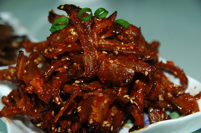 1. 노가리 간장 조림과 고추장 조림. 재료; 노가리, 간장 조림(간장, 물엿, 버섯가루, 설탕, 마늘, 맛술, 깨소금), 고추장 조림(간장 대신 고추장과 생수 반 씩, 나머지는 간장 조림과 동일)