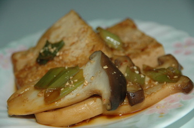 9. 두부 새송이 조림. 재료; 두부, 새송이. 올리브유, 조림장(간장, 생수, 설탕, 파, 마늘, 깨소금)
