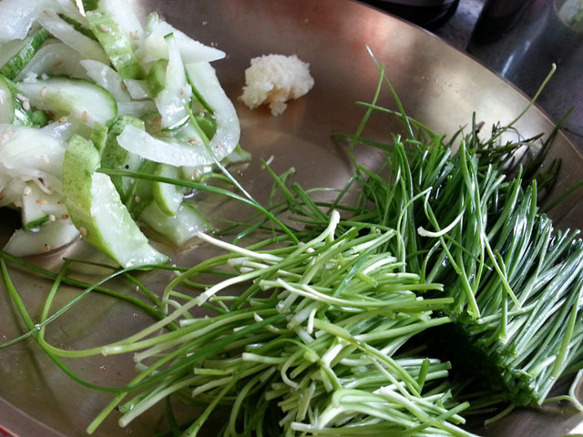 오이와 양파는 한꺼번에 절인 후 물기를 꼭 짜고~