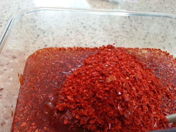 그래서 고춧가루를 적당히 섞어 줍니다.