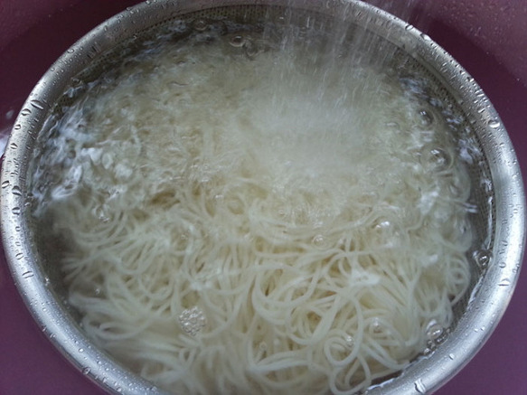 깨끗히 헹군다는 것은 국수씻은 물이 맹물처럼 맑을 때까지 헹궈줘야 합니다.