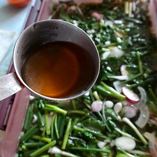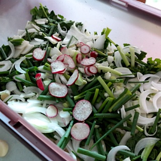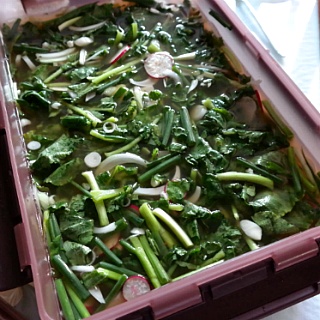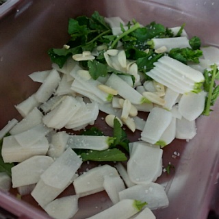 밭에서 너무 늦게 수확해 바람든 레디쉬도 썰어 넣었습니다.