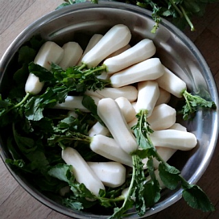 보통 알타리무김치는 무를 주로 먹기에 겉잎은 거의 다 떼어내서 데쳐 말려 시래기로 먹었다지요.