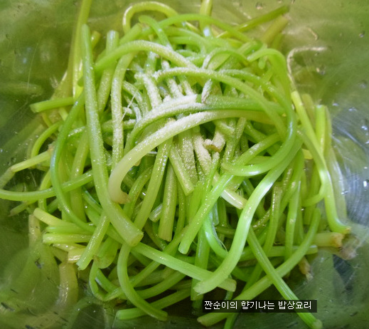 그래야 초록색감이 좋고 더이상 물러지지 않겠지요