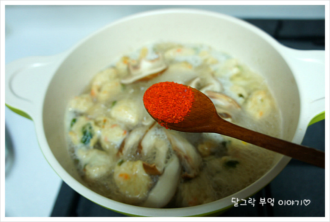 버섯이나 어묵은 오래 끓이지 않아도 되니까 한소끔 끓어 오르면