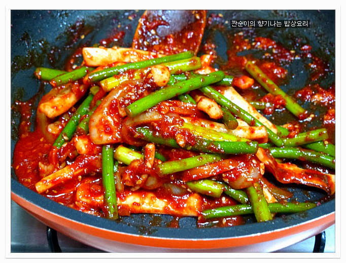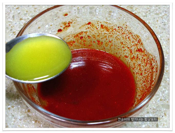 양념장:약간매운고추가루반큰술,집고추장반큰술,맛술2큰술,양조간장2큰술,생수5큰술,귤청1큰술반,후추