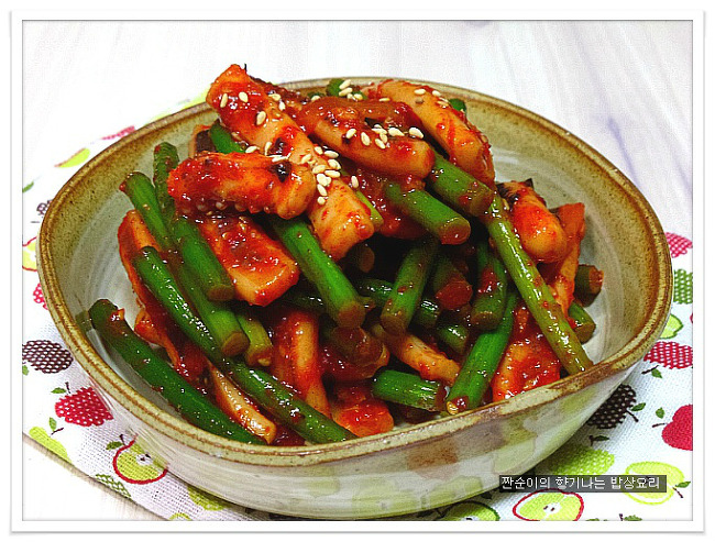 오늘은 제가 만든 마늘쫑오징어 볶음요리로 반찬걱정 덜어버리심 어떠실까요? ~~~