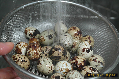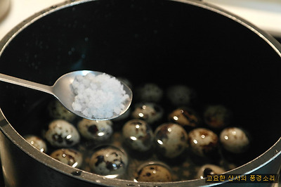 ㉠ 메추리알이 잠길 만큼 물을 붓고 소금을 넣어준다.