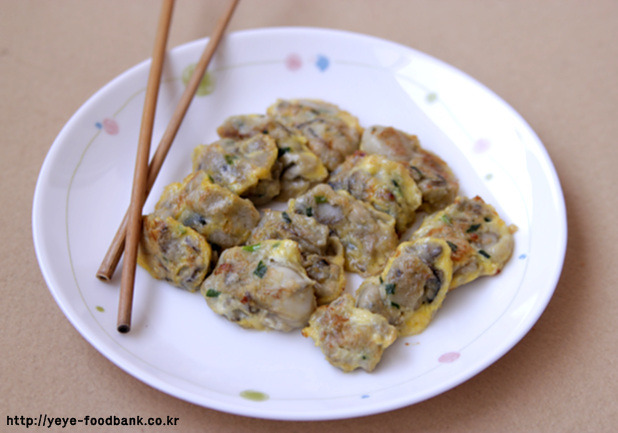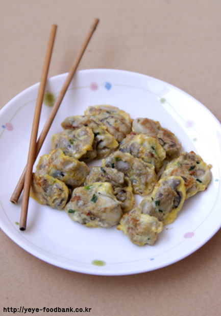 굴은 보통 생으로 먹지만 살짝 익혀먹는 굴도 맛이 좋아 굴전을 많이 부쳐먹곤 한답니다~