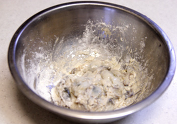 통밀가루를 물기뺀 굴에 버무려주는데요..