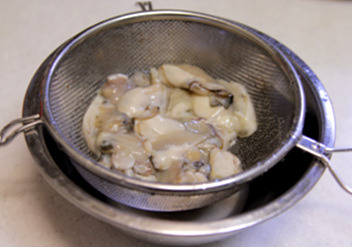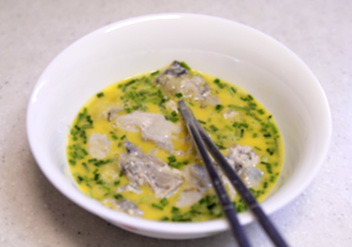 밀가루 묻힌 굴을 달걀물 입혀주세요~