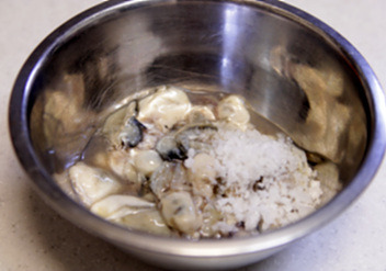 먼저.. 굴은 굵은소금을 한줌 던져넣고