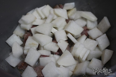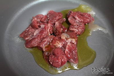 달군냄비에 소고기를 넣고 참기름과 함께 볶아주세요.