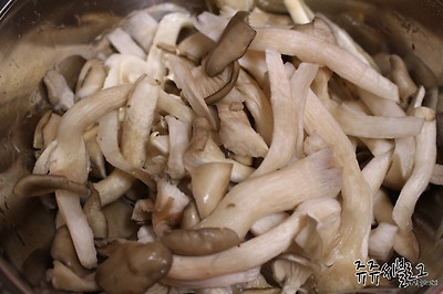 버섯도 쭉쭉 찢어서 준비해주고요.