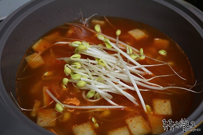 육수를 넣고 콩나물을 넣은다음 재빨리 뚜껑을 닫고,