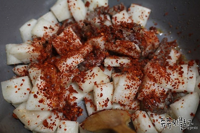무 표면이 살짝 익을때까지 볶아줍니다.
