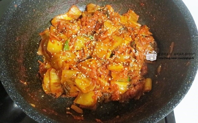 신김치가 어느정도 볶아지면,