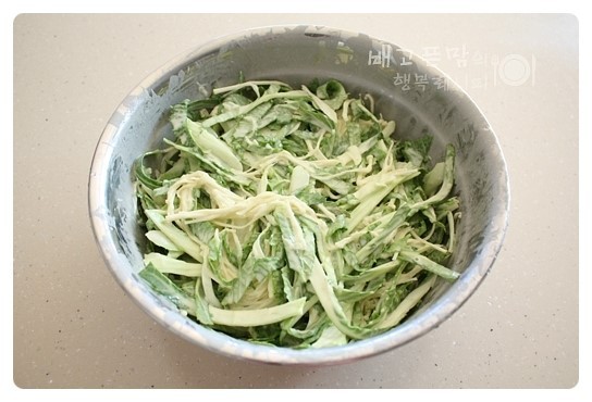 반죽 그릇에 채썬 봄동을 넣고
