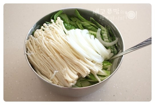 냉장고에 시들어 가는 팽이버섯도 먹어 치워야 할것 같아