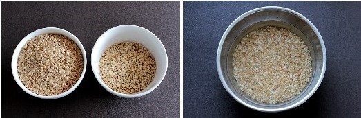 현미와 현미 찹쌀을 씻어 물에 담가 2시간정도 불린다