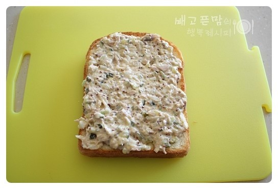 준비한 참치마요 1/2을 덜어 고루 바르고