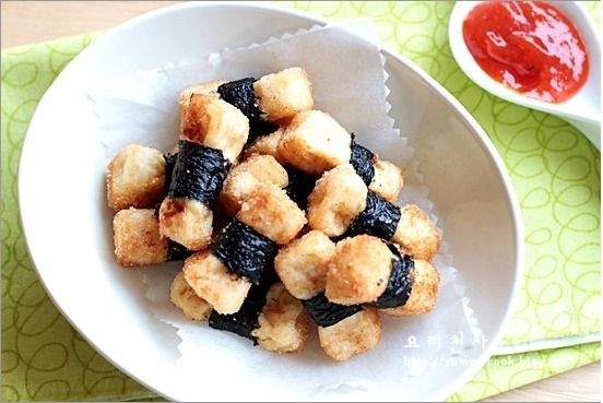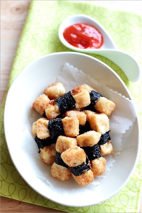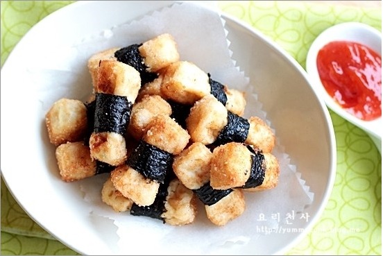 김띠 둘러서 바삭하게 튀긴 두부간식