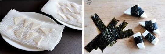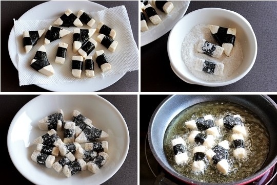 두부 300g, 김밥김 3장, 소금 약간, 찹쌀가루 1/2컵, 튀김기름 1/2컵