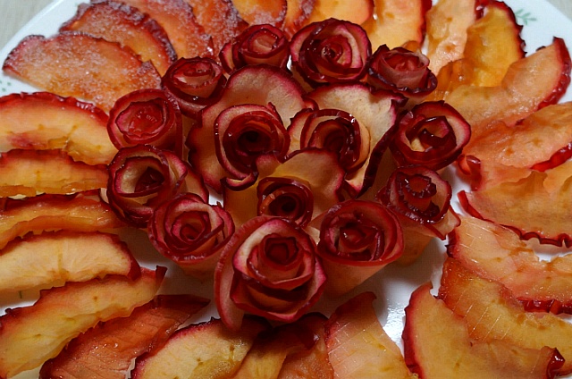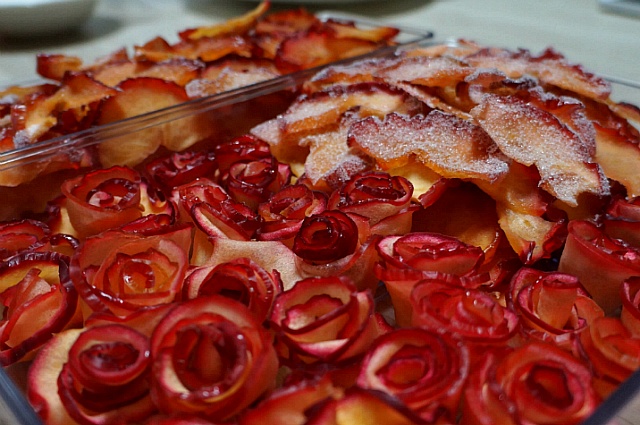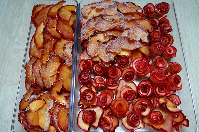 일부는 설탕을 묻혀 놓기도 하고 일부는 장미로 일부는 먹기좋게 만들어 두었는데