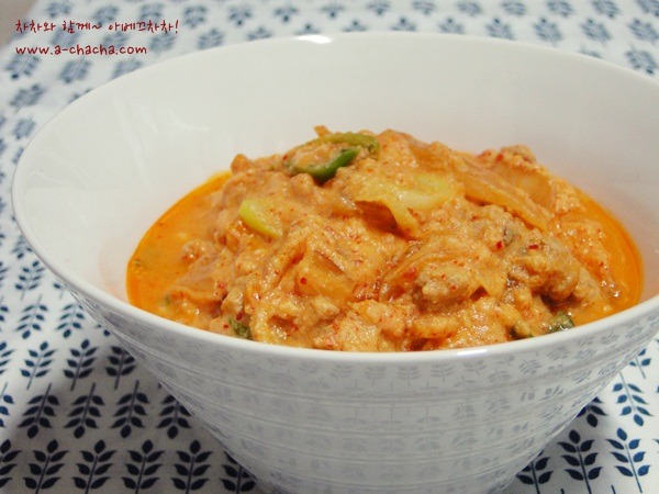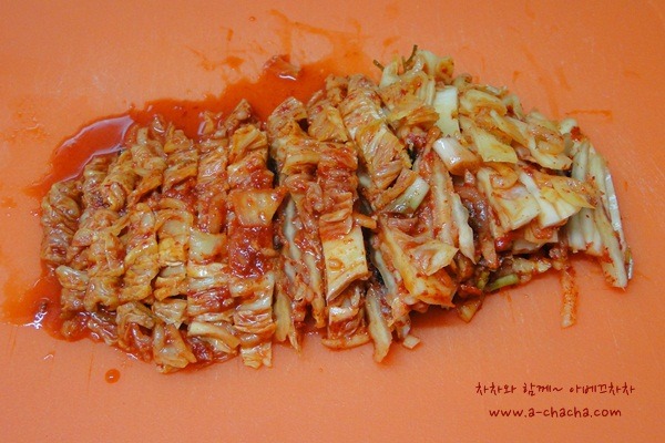 양념 : 들기름 1큰술, 김치국물 반컵, 고춧가루 1스푼