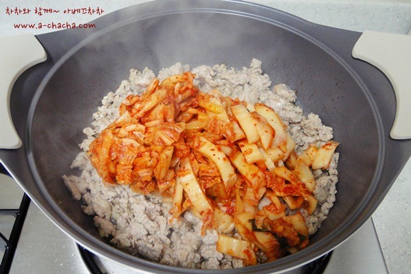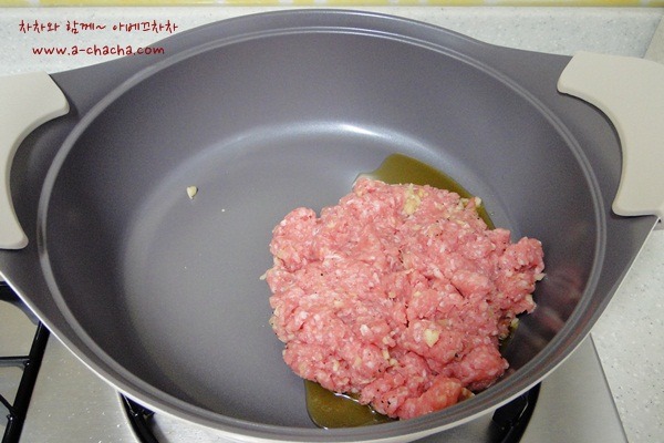 저는 다진 돼지고기로 했는데 집에 통으로 있으신분들은 채썰어 사용하시면 되세요~