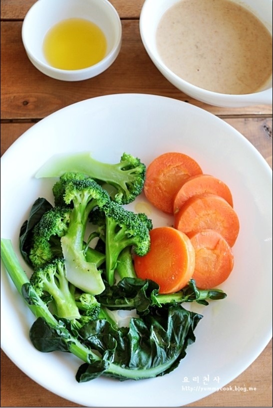 당근과 브로콜리는 찜기에 부드럽게 쪄서