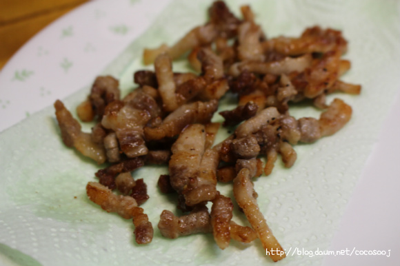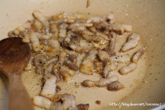 삼겹살 기름을 버리지 않고 조리하시면 더 맛은 있겠지만...