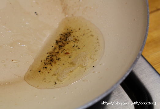 노릇해지면 소금 후추를 조금반 뿌려주신 후에 불을 끄세요~